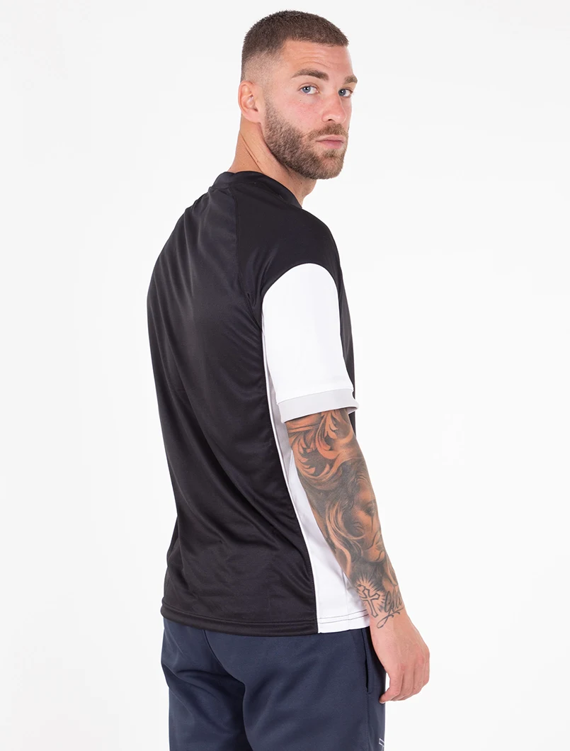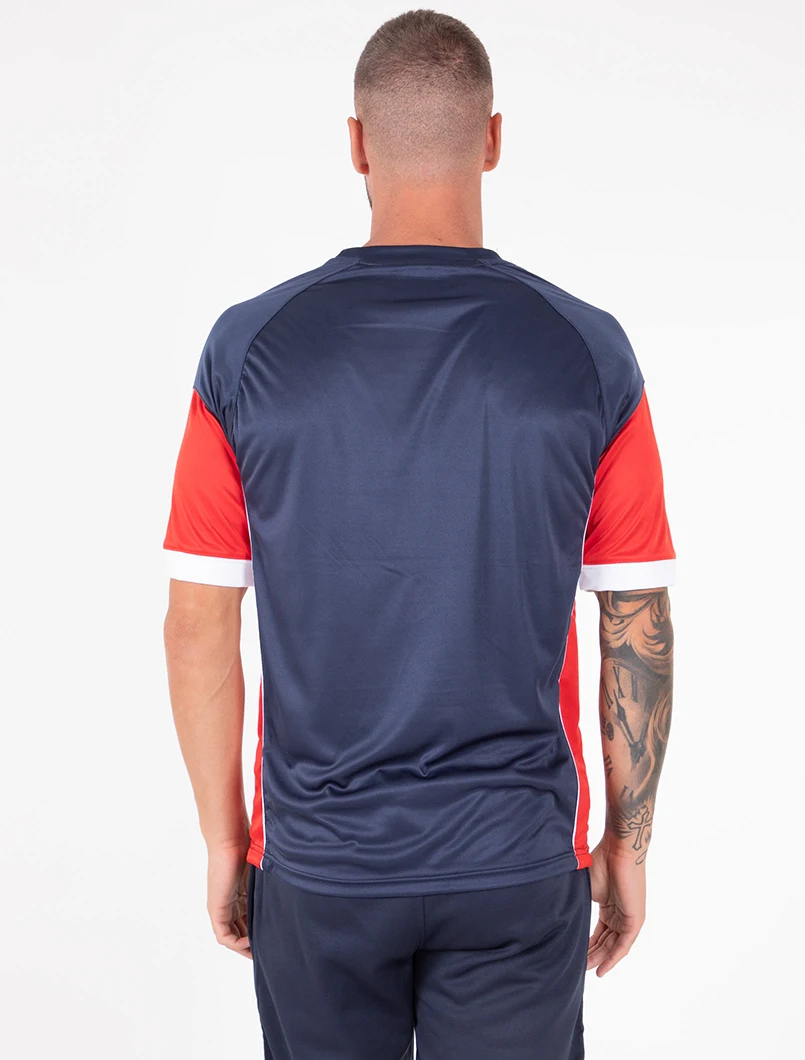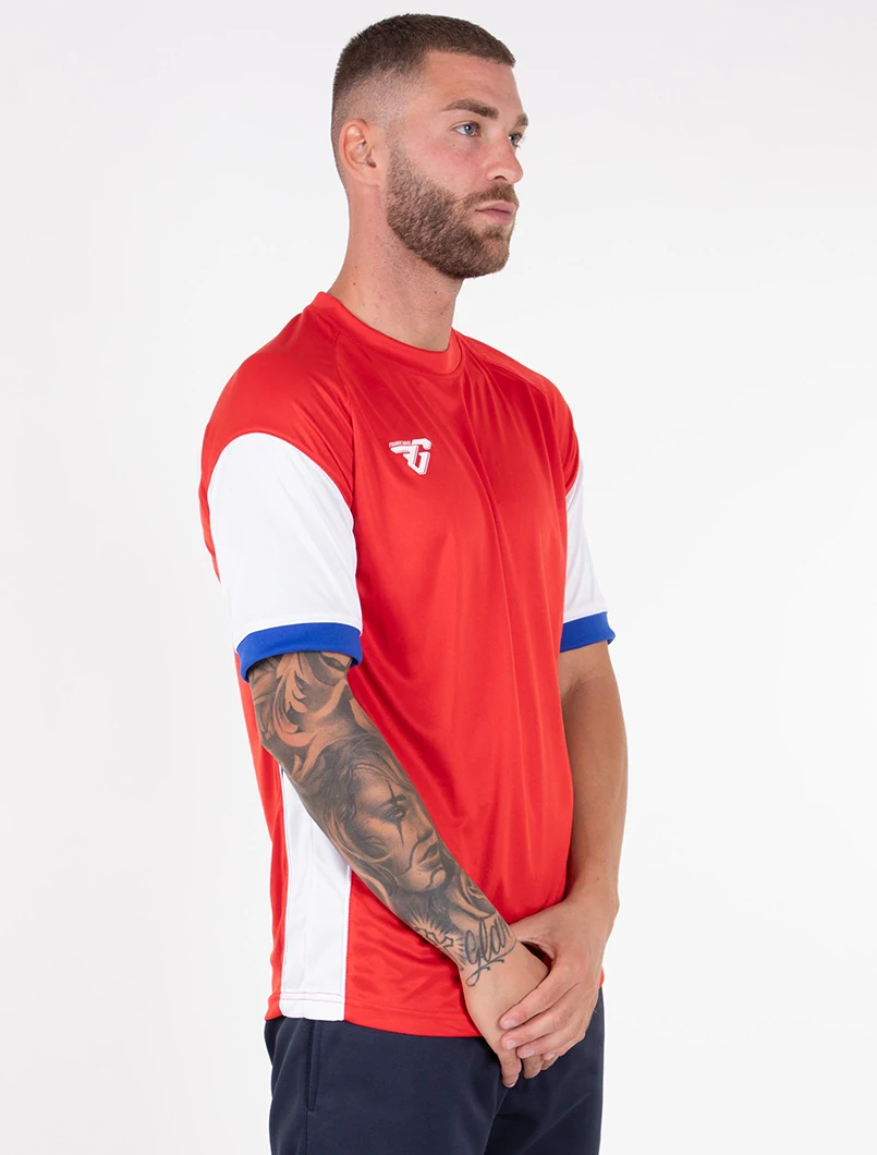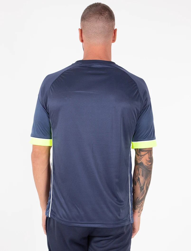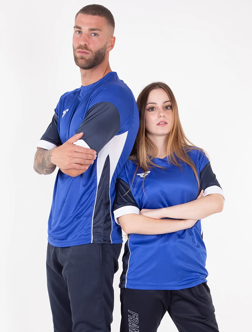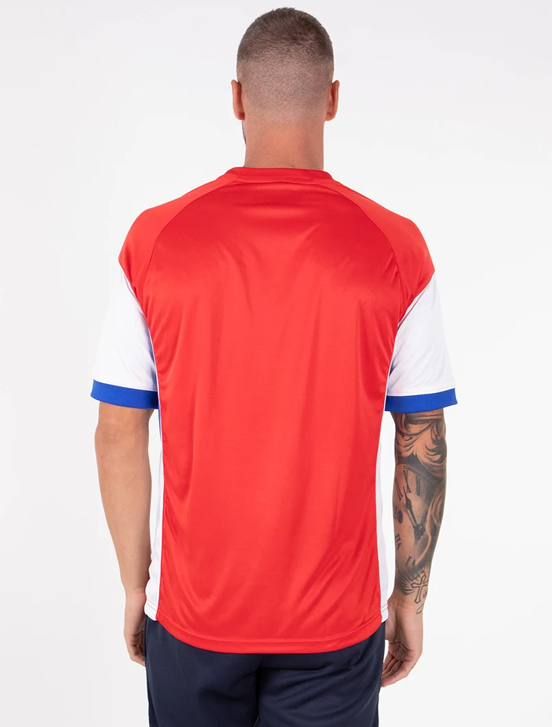 T-shirt da calcio, realizzata in tessuto Interlock, è leggera, morbida e resistente. Il girocollo è stato realizzato con lo stesso tessuto del corpo.