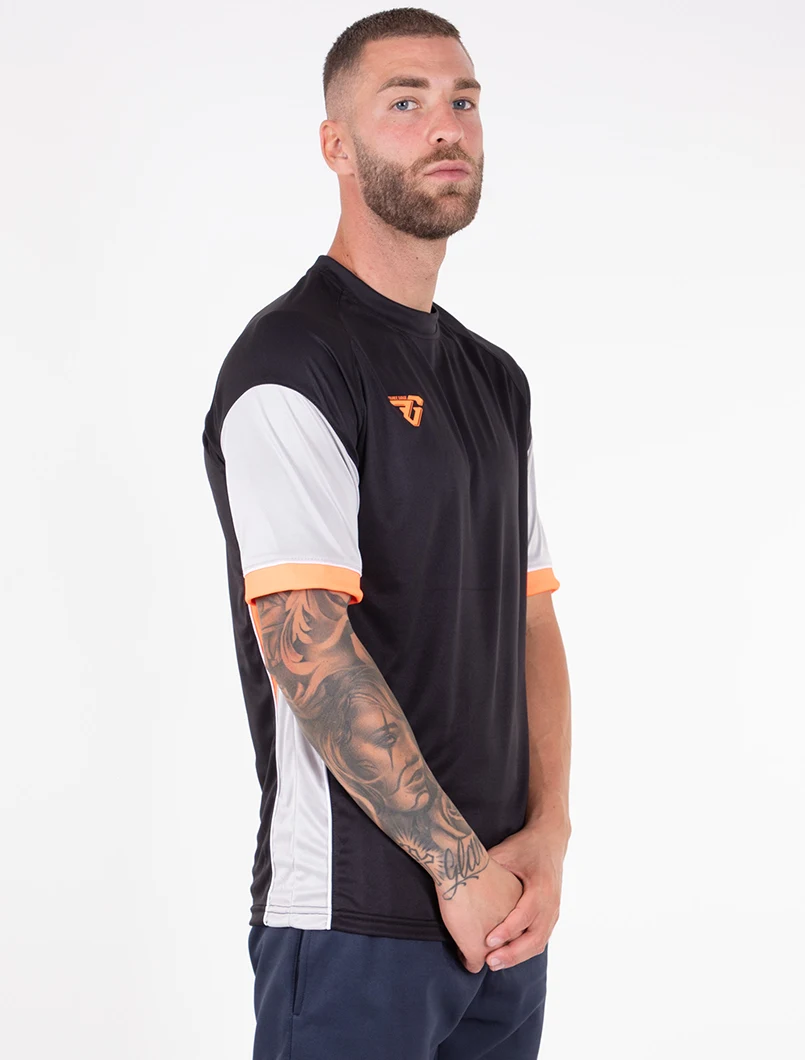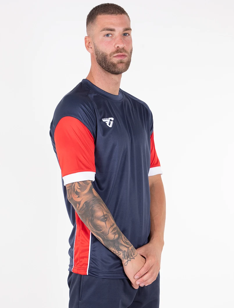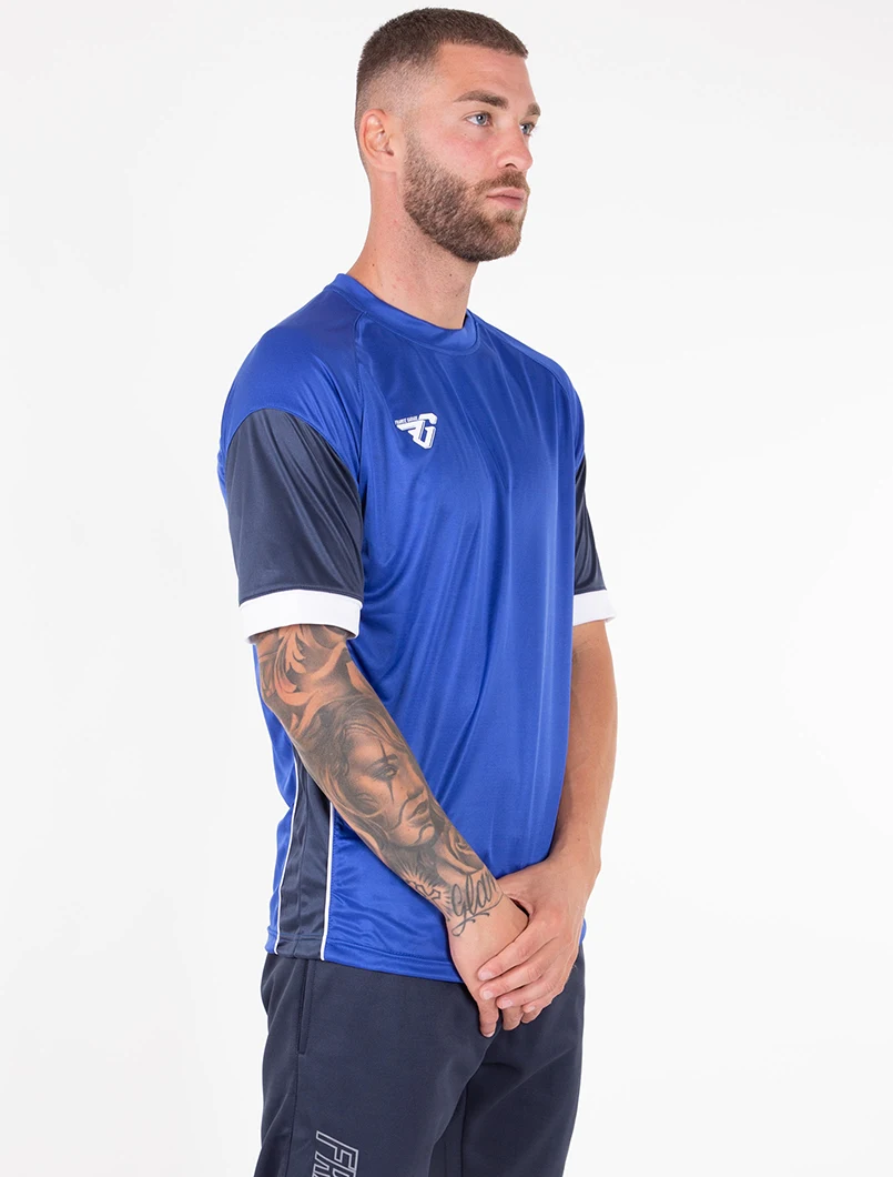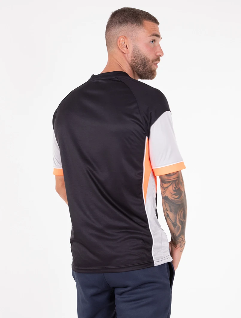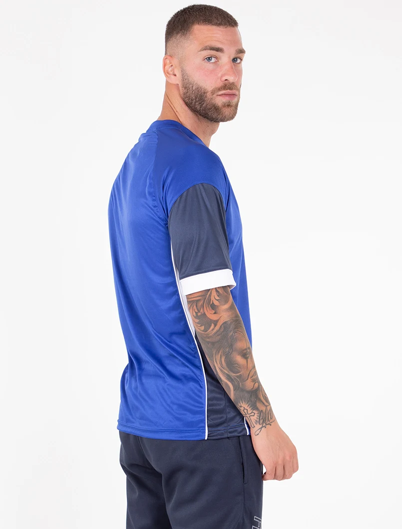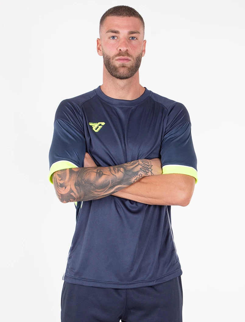 T-shirt da calcio, realizzata in tessuto Interlock, è leggera, morbida e resistente. Il girocollo è stato realizzato con lo stesso tessuto del corpo.