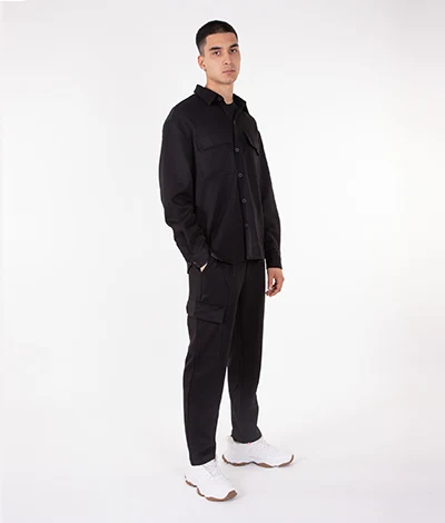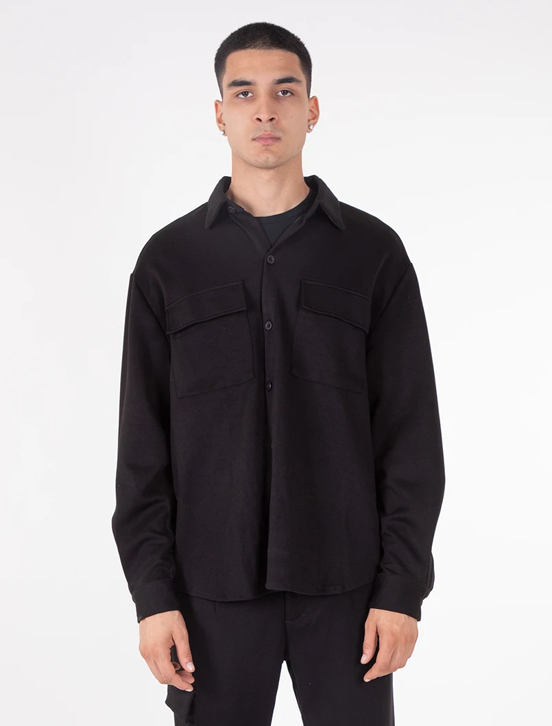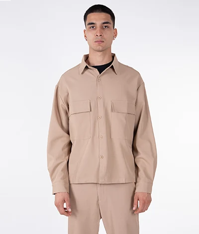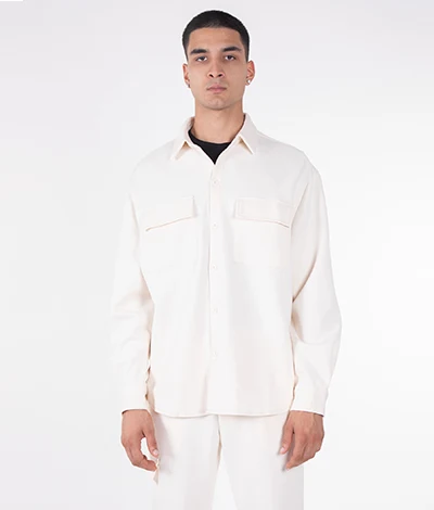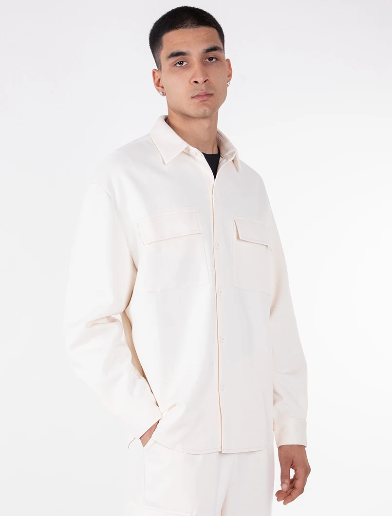 Camicia Overshirt elasticizzata con vestibilità Oversize e tasche con chiusura a pattina..