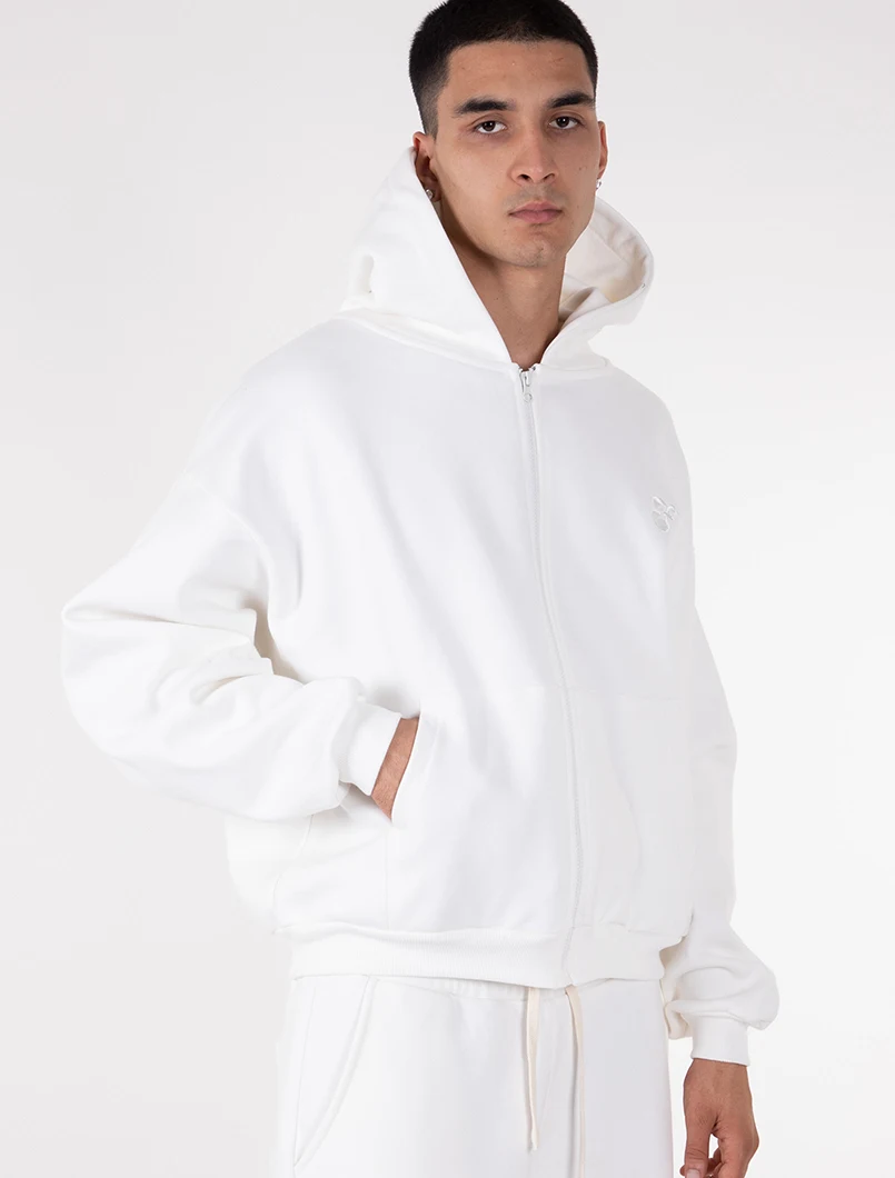 Felpa con cappuccio full zip dalla vestibilità boxy fit. Realizzata in tessuto 100% cotone garzato. Ricamo diretto del logo "F" tono su tono posizionato lato cuore .