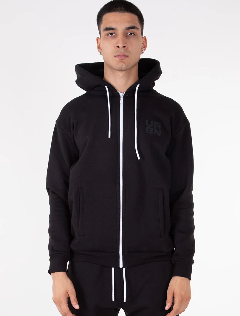Felpa Fullzip con cappuccio dalla vestibilità Regular. Realizzata in tessuto garzato. Zip e coulisse a contrasto e stampa gommata in tono su lato cuore.