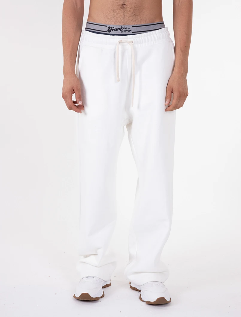 Pantalone tuta taglio skater. Vita elasticizzata con laccio e ricamo logo "F" tono su tono posizionato su una delle due tasche posteriori .Realizzato in tessuto 100% cotone garzato da 330gr.