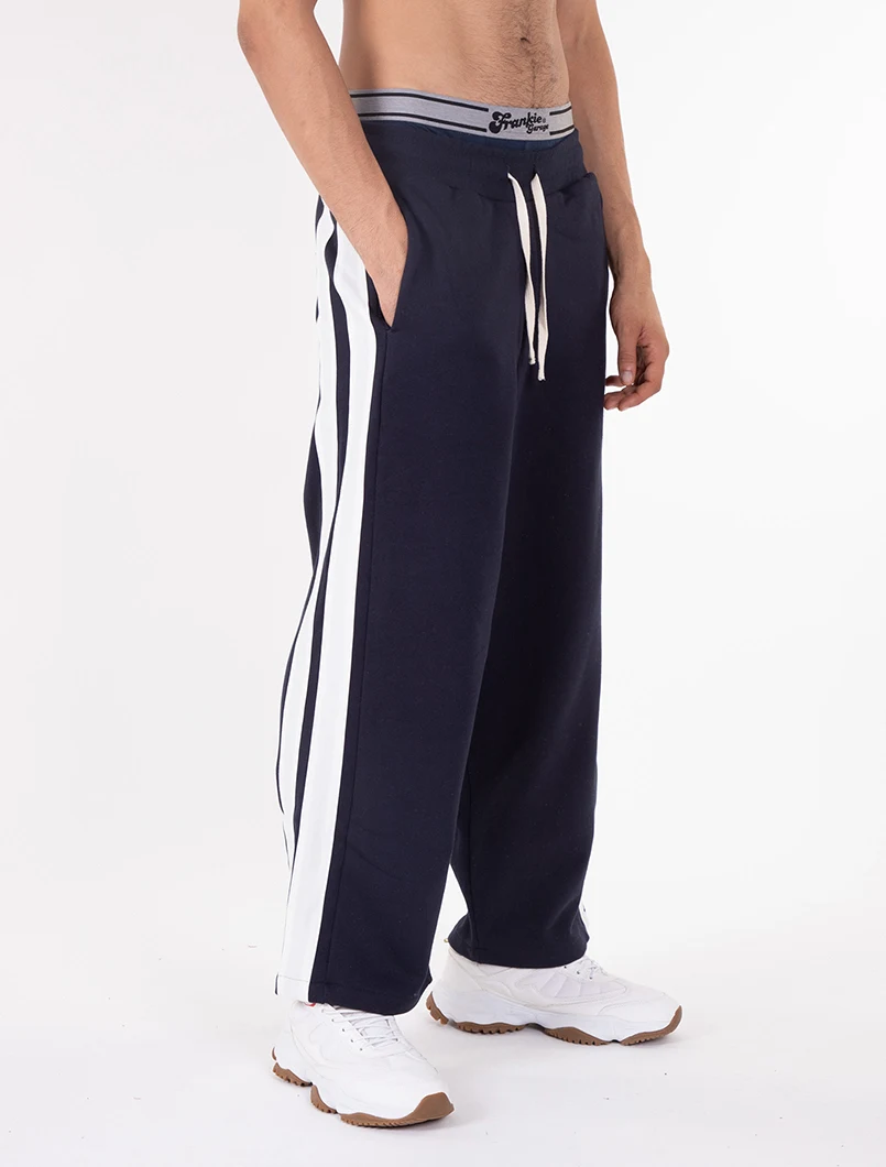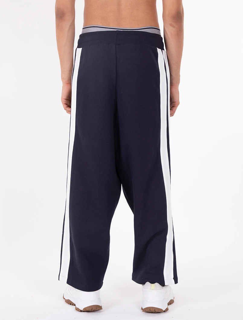 Pantalone Tuta con vestibilità Oversize. Realizzato in tessuto garzato e con l'applicazione di una doppia banda a contrasto su entrambe le gambe. Coulisse a contrasto.