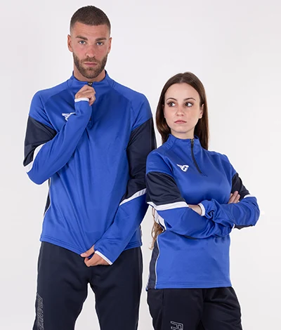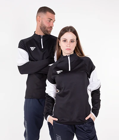 Felpa da allenamento, leggermente garzata all’interno. Il fondo manica presenta un foro per l’uscita del pollice.